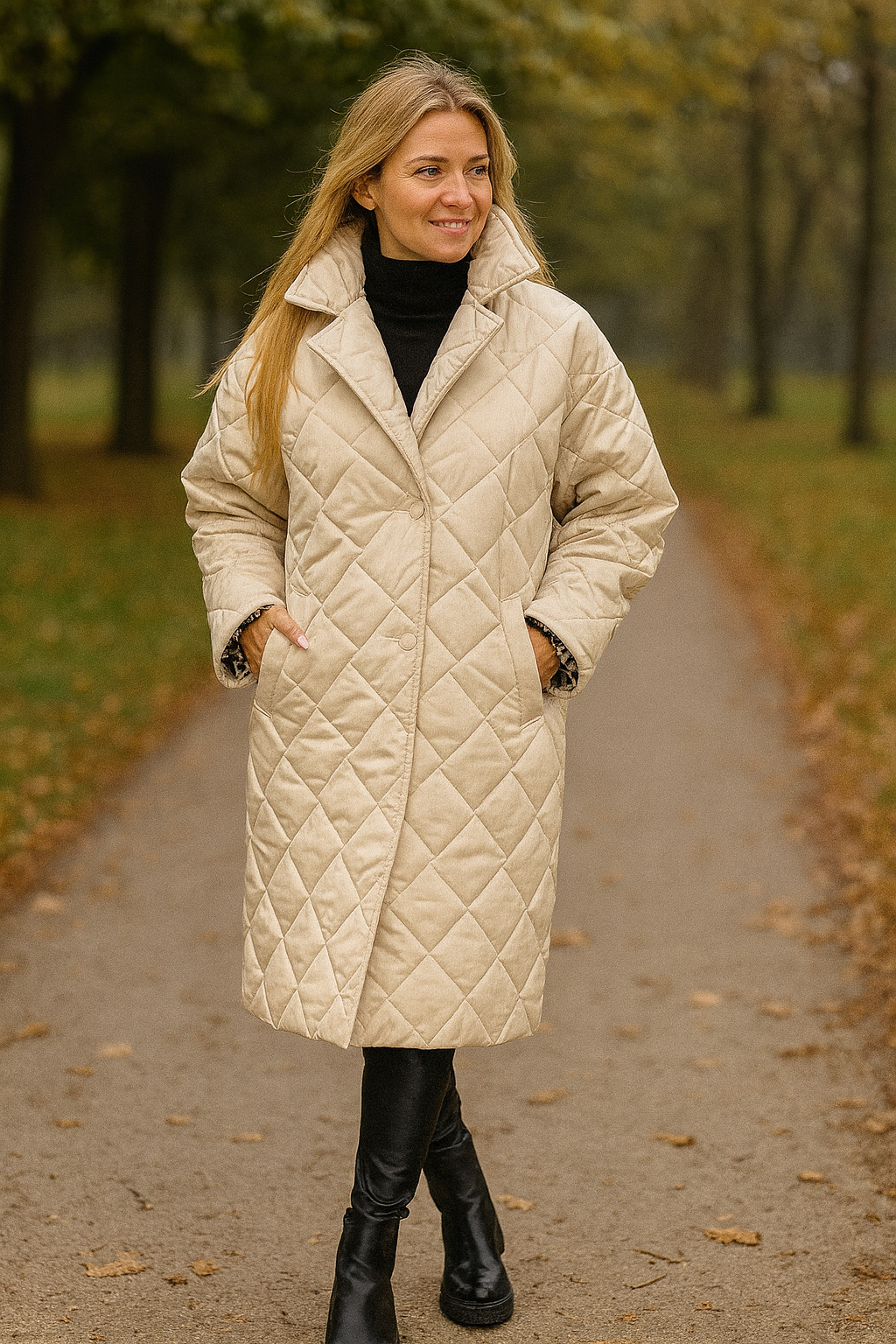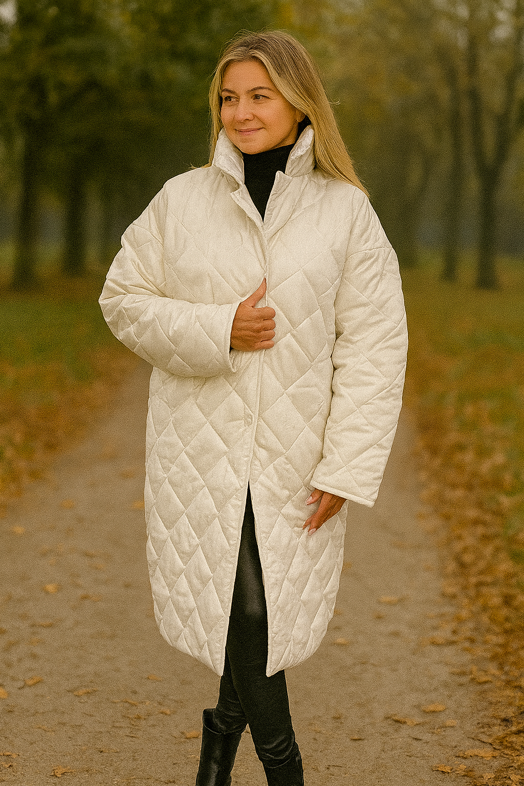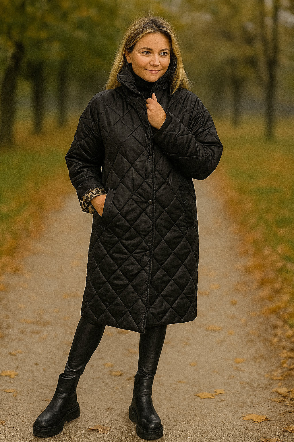 Czasem chcesz po prostu otulić się ciepłem, ale nie zrezygnować z klasy. Dariana to płaszcz, który łączy jedno z drugim – miękki, elegancki i niezwykle kobiecy. Z zewnątrz klasyczne pikowanie, a wewnątrz subtelne leopardzie wnętrze, które dodaje mu charakteru. To płaszcz, który sprawia, że każda zimna chwila staje się przyjemnością.